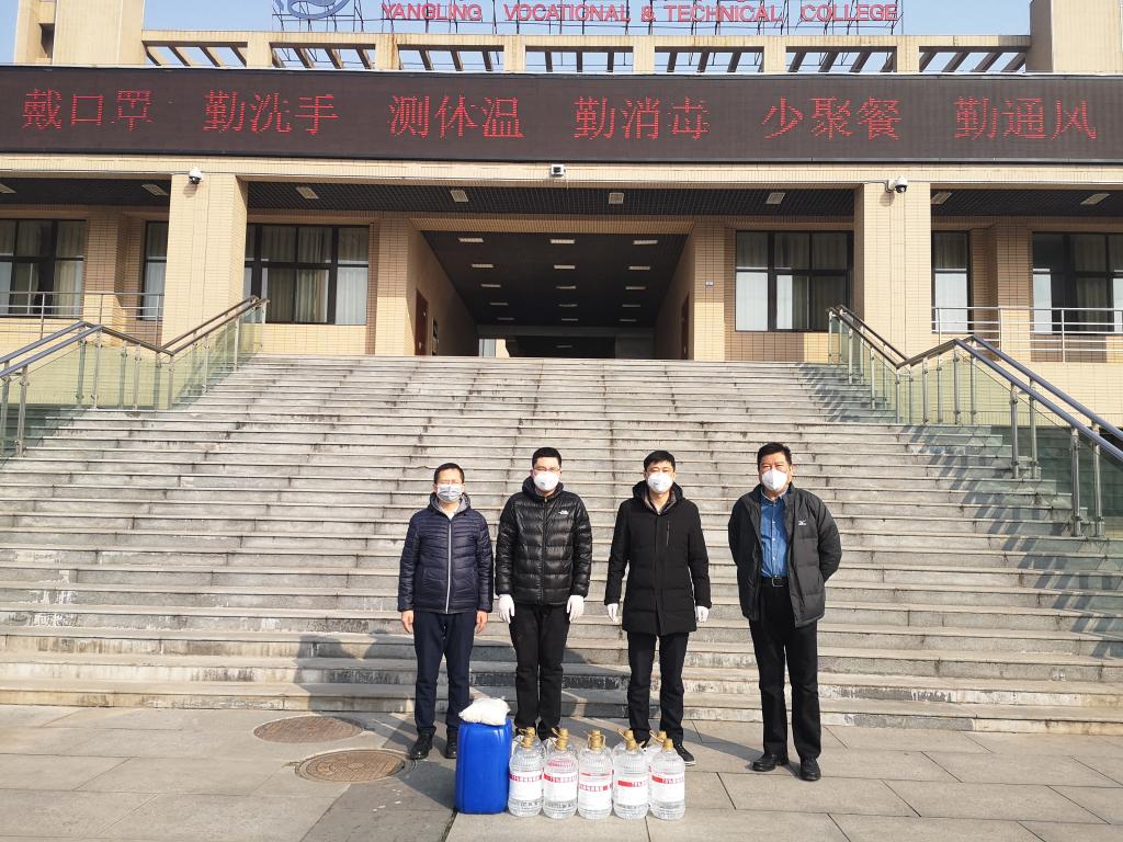 2月12日上午,中国银行杨凌示范区支行为我院捐了一批疫情防控应急物资——50升84消毒液、50升酒精消毒液和100双医用手套。学院党政办负责人代表学院接受捐赠,并表示感谢。