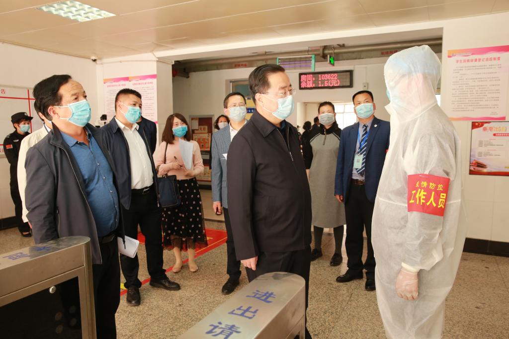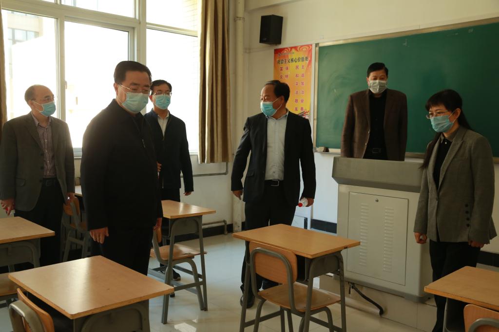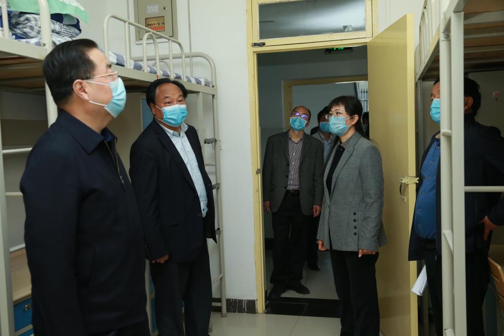 4月26日下午,省委教育工委委员、省教育厅副厅长王海波,省教育厅人事处处长权秋虎,省疾病预防控制中心主管医师刘蓉等一行6人来我院检查指导学院2020年春季开学准备和疫情防控工作。学院党委书记陈宁,党委副书记、院长王周锁,副院长祝战斌及相关部门负责人陪同检查。