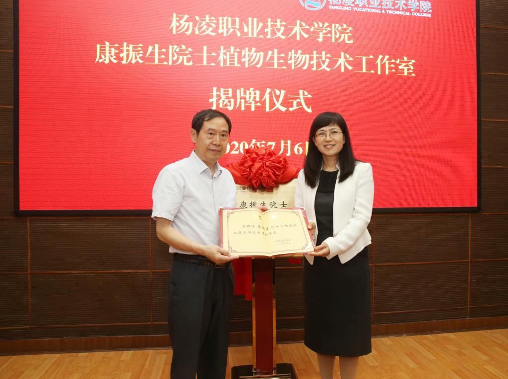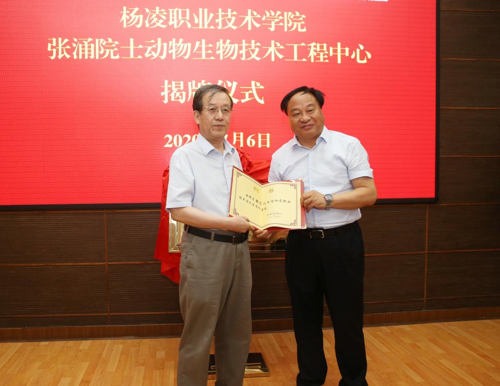 会上,吴普特、王周锁代表双方签署了《西北农林科技大学支持杨凌职业技术学院建设高水平高职院校框架协议》。康振生院士、陈宁为杨凌职业技术学院—康振生院士植物生物技术工作室揭牌;张涌院士、王周锁为杨凌职业技术学院—张涌院士动物生物技术工程中心揭牌。陈宁、王周锁分别为康振生院士、张涌院士颁发首席科学家聘书。