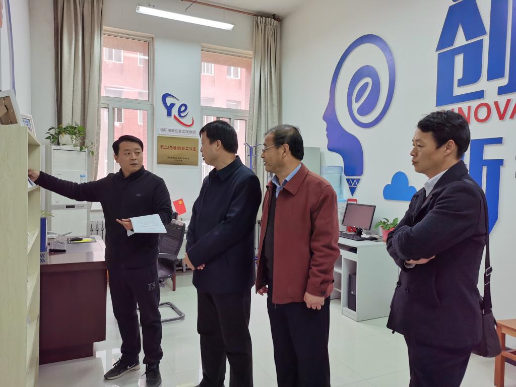 徐富权一行主要调研了我校获省教科文卫体工会授牌的郑伟创新工作室工作开展情况。在详细了解工作室的日常运行、产生的社会效益、专项资金使用等情况后,徐富权对工作室依托杨凌农科优势和发挥电商专业特长,培养学生创新创业思维、延伸专业辐射面、获得技能和社会效益双收获给予肯定,并参观了创新创业工作室培育基地。