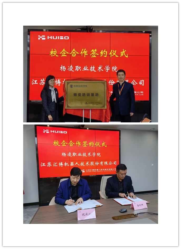 调研期间,我校还与江苏汇博机器人技术股份有限公司举行了深度合作战略协议签字仪式、师资培养基地授牌仪式。