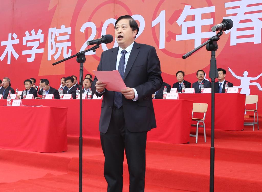 校长王周锁宣布2021年春季田径运动会运动会开幕