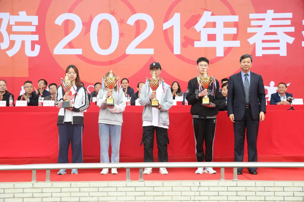 展青春风采,扬运动雄风。4月22日至23日,我校2021年春季田径运动会在南校区体育场举行。学校党委副书记、校长王周锁,副校长张迪、祝战斌、胡俊鹏,各学院(部)党总支书记、院长、各处室(中心)负责人以及大一、大二辅导员、学生近万余人参加了开、闭幕式。来自11个学院的400余名运动员参加了28个项目的角逐。