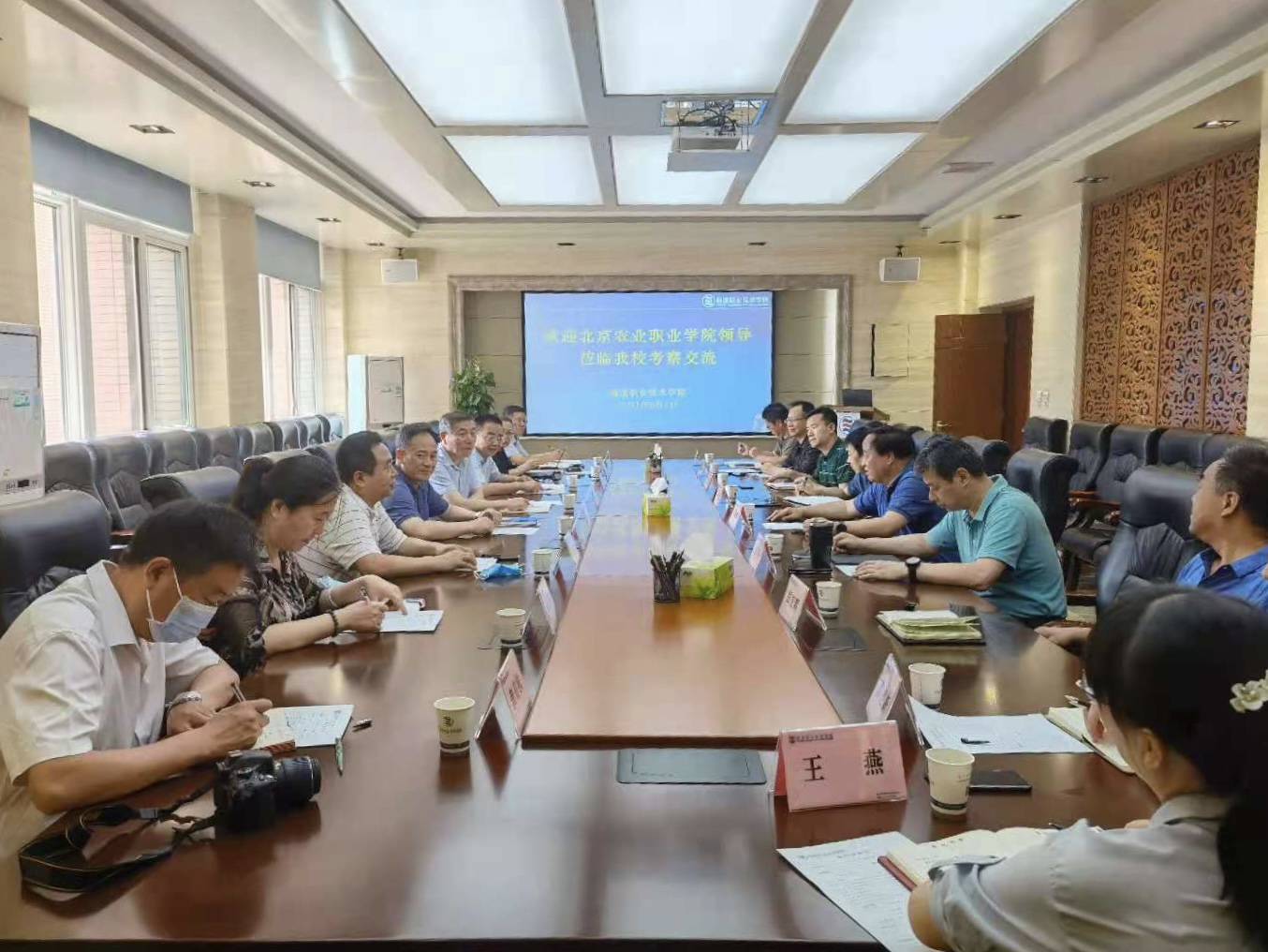 座谈会上,王周锁代表学校对王晓华一行来访表示欢迎,并介绍了学校的历史沿革和发展现状。张迪介绍学校在人才培养、社会服务、高素质农民培养等方面取得的经验和成就。王晓华介绍了北京农业职业学院的办学经历、人才培养、产教融合、社会服务等情况。双方均表示,作为涉农高职院校,今后要加强交流学习。随后,双方与会人员围绕“十四五”规划、高职院校改革发展经验、人才培养、“放管服”改革等方面工作进行深入交流探讨