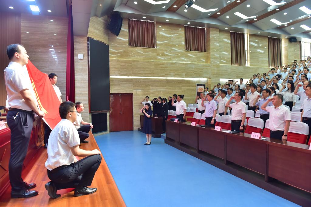 7月5日下午,学校庆祝建党100周年表彰大会在南校区思辨堂举行。党委书记陈宁出席会议并讲话,党委副书记、校长王周锁主持大会。