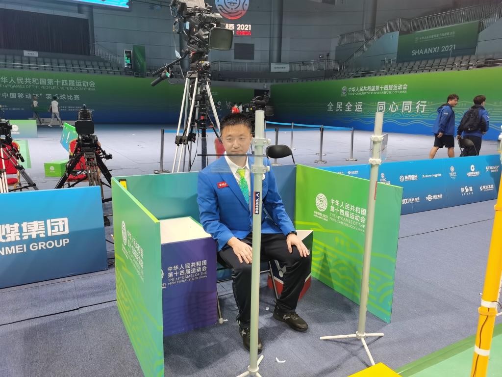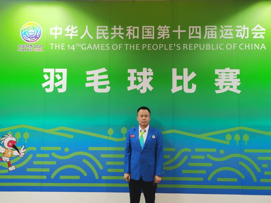 体育课教学部第一教研室主任杨杰,在十四届全运会在羽毛球项目比赛中担任临场裁判。