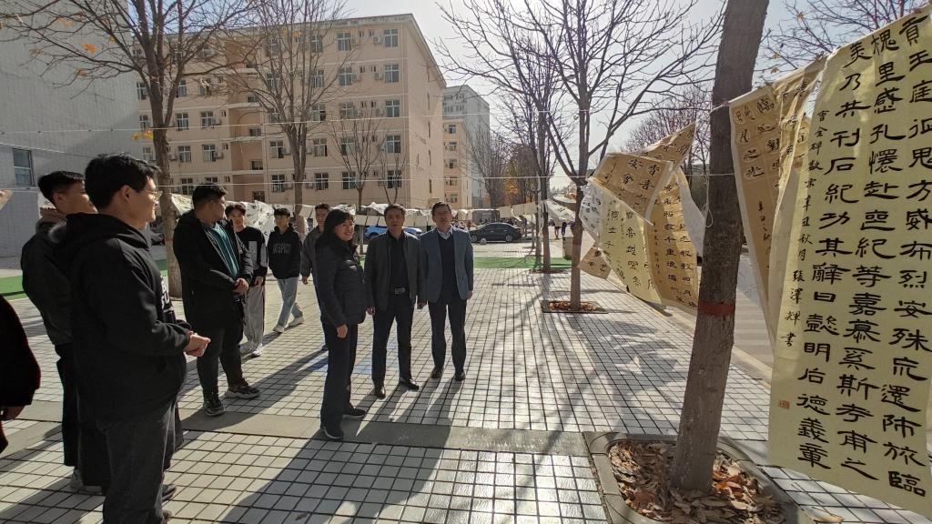 参展中,陈宁表示,书画艺术源远流长,是中华民族的文化瑰宝,勉励同学们要把学习中华优秀传统文化同自己的学习实践结合起来,坚定文化自信,勤加练习,锤炼意志,努力奋斗,不断提升综合素质,争做新时代优秀大学生。