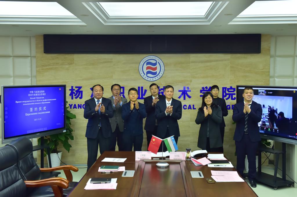 1129日下午,由杨凌职业技术学院古利斯坦国立大学杨凌现代农业国际合作有限公司共同合作的中国-乌兹别克斯坦农业专业教育合作项目(杨凌职业技术学院古利斯坦国立大学现代农业学院)建设合作协议签约仪式在线上举行。