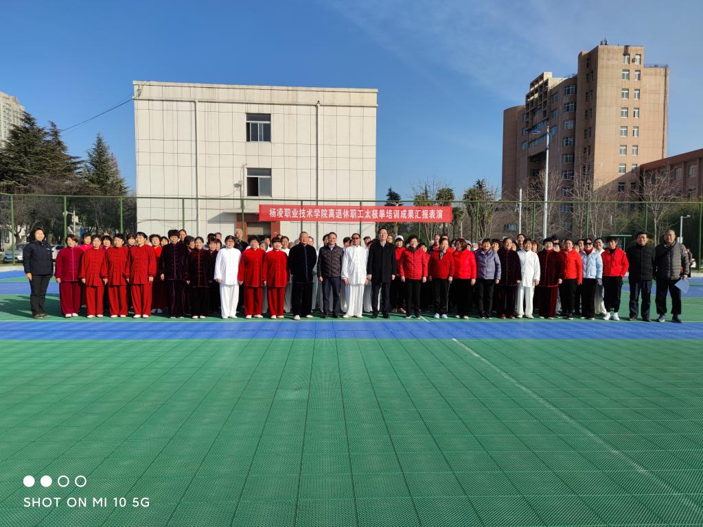 122日下午,离退休人员太极拳培训成果汇报表演校区篮球场进行100余名离退休人员参加了汇报表演。党委副书记任得元观看了表演。