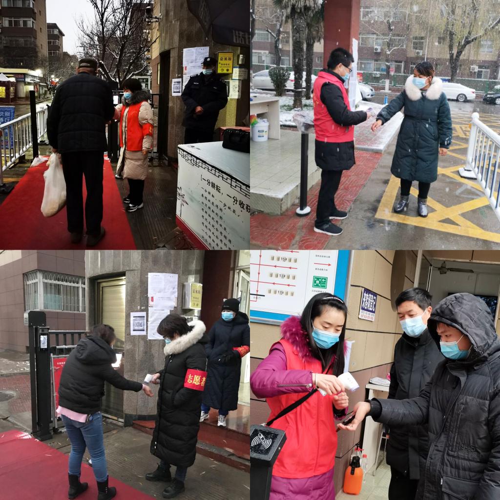 疫情就是命令,防控就是责任。两天志愿服务期间,天气严寒,任务繁重,20余名志愿者主动请缨,轮流值守在田园居、春园、秋园、御景国际、东方明珠、竹园、芳园松园等八个居民小区服务社区防疫工作。通过协助测体温登记个人信息,查验健康码、行程码和核酸检测证明,及时疏导劝散聚集人群,宣传倡议群众保持一米间距戴口罩做好个人防护,以实际行动贡献社区防疫工作。