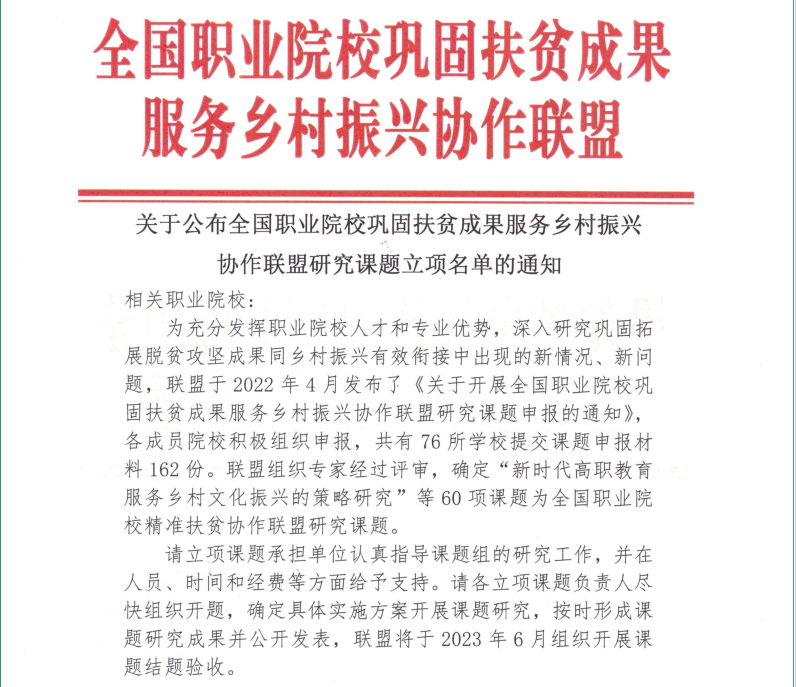 学校获批3项全国职业院校巩固扶贫成果服务乡村振兴研究课题
