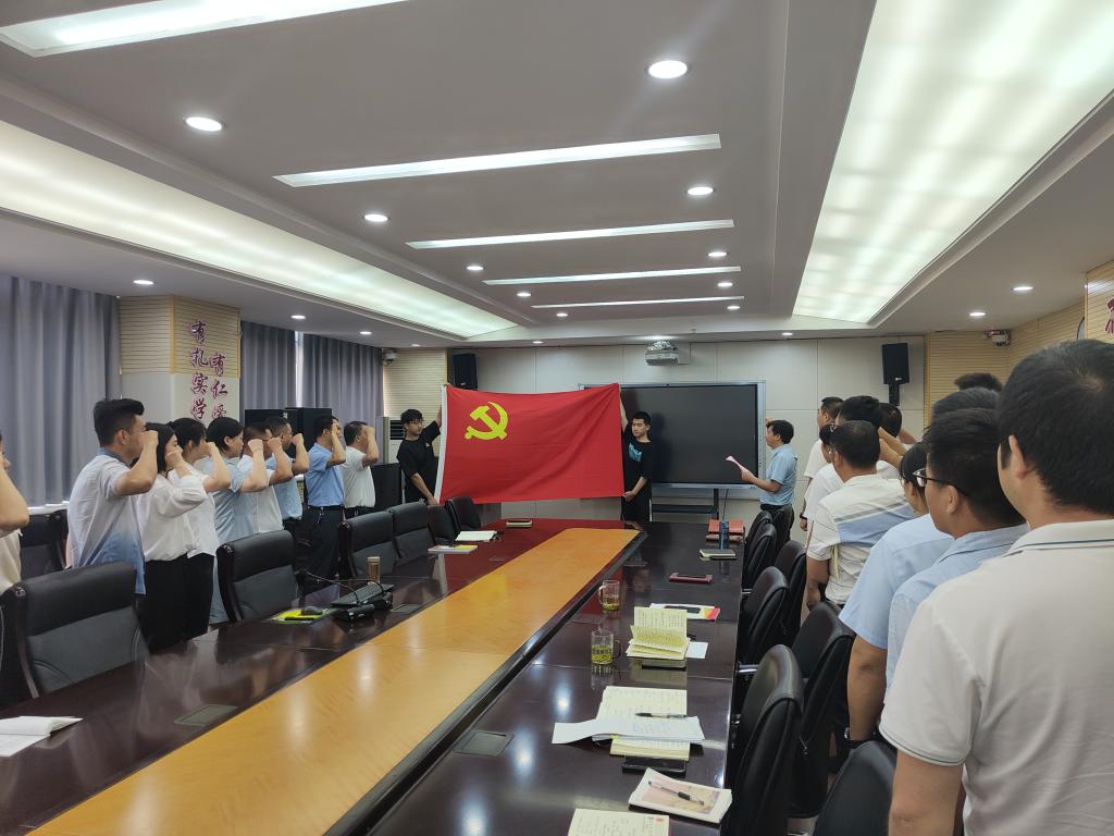课后,交通与测绘工程学院党总支副书记邓留坤带领职工党员重温入党誓词,青年教师代表高熙贺作了表态发言。