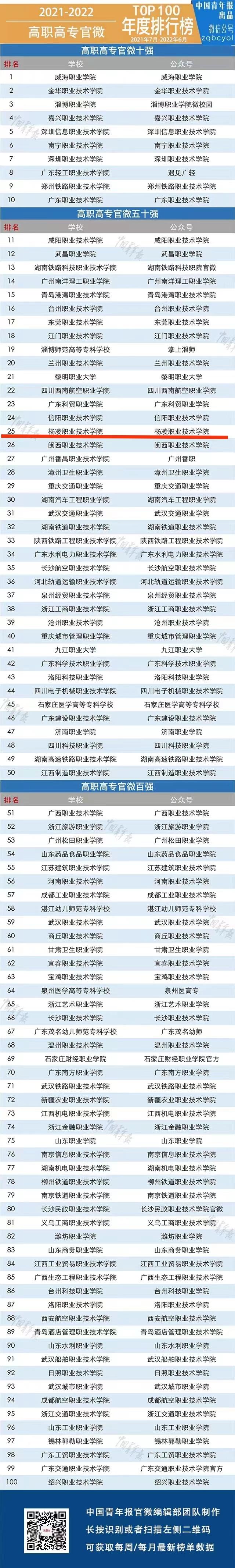 喜讯|学校官微荣膺全国高职高专官微50强(排名第25位)