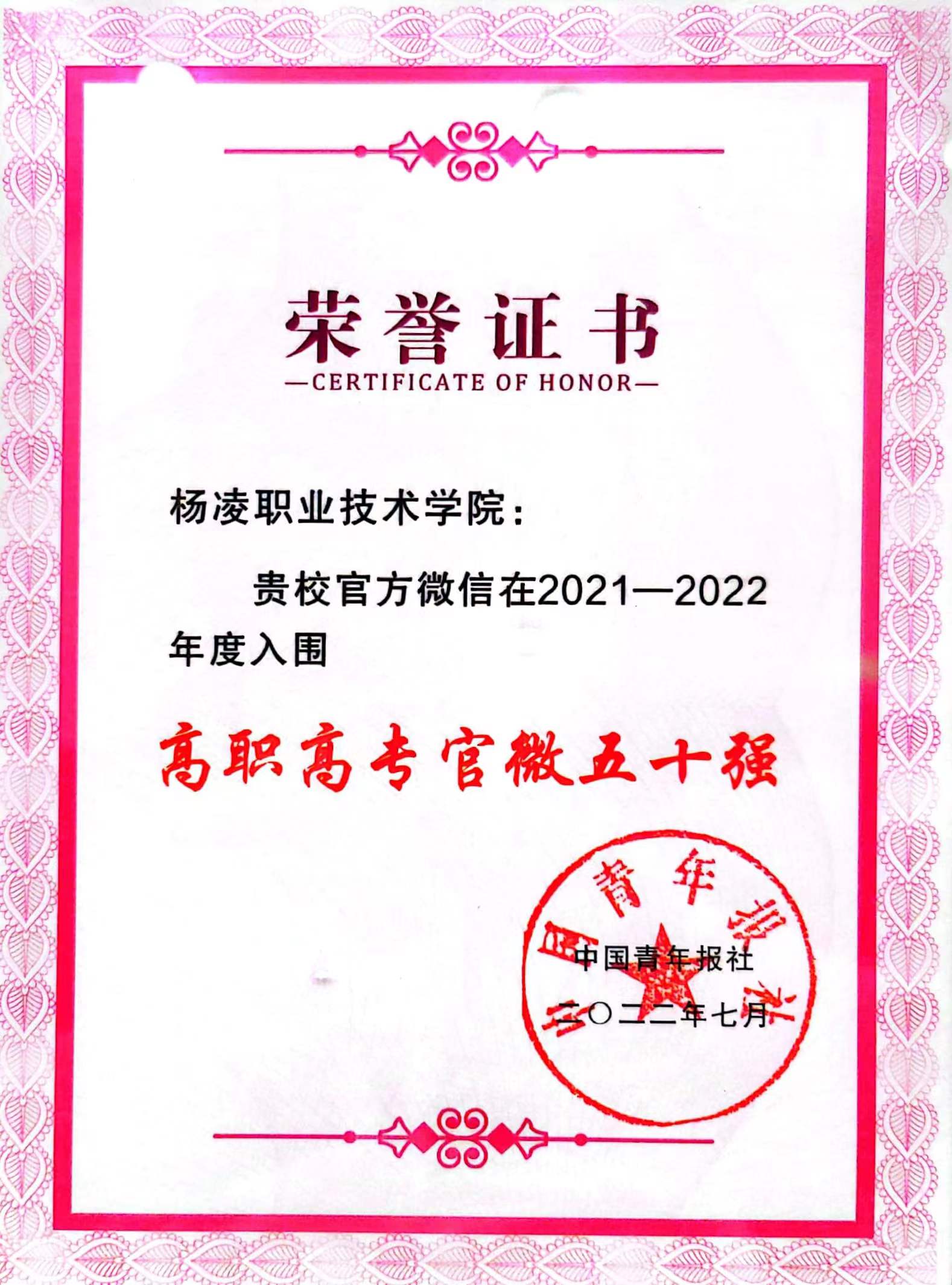 8月9日,中国青年报“青春元宇宙助力高校大思政”研讨会暨校媒精英汇在山东青岛召开会上公布了“2021-2022年度中国大学官微百强”名单,我校官微排名25位,再次进入全国高校官微50强行列,影响力指数持续上升。