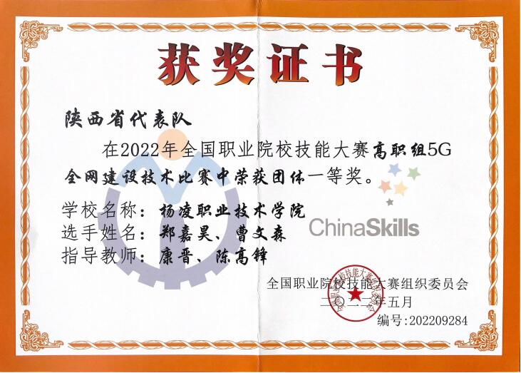 杨凌职院荣获全国“5G全网建设技术”赛项一等奖第一名