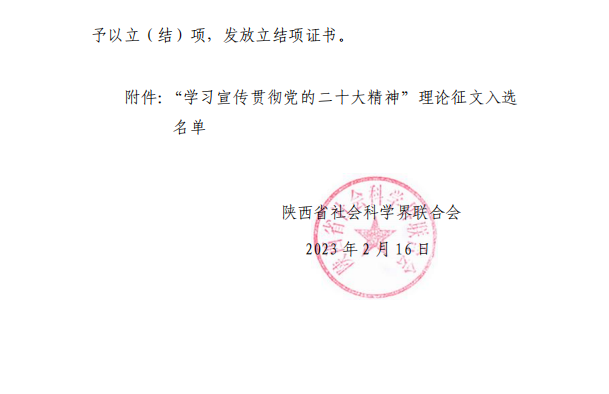 我校教师论文入选“学习宣传贯彻党的二十大精神”理论征文名单