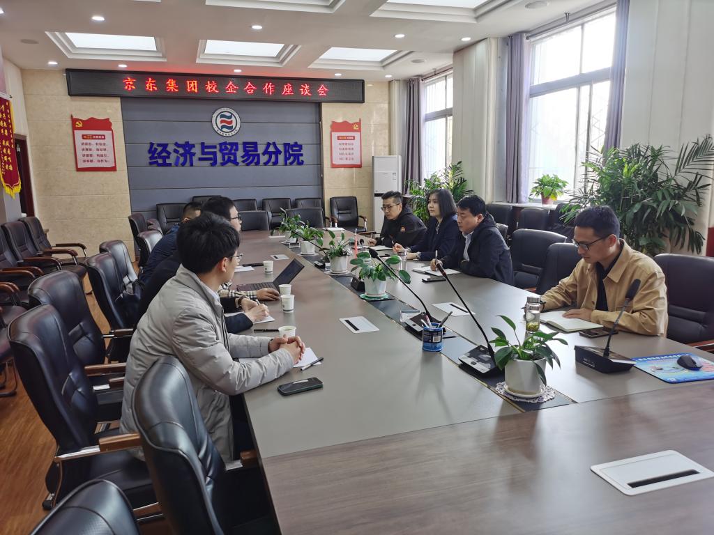 为大力推进产教融合、校企合作,深化人才培养模式,3月10日,京东集团供应链解决方案部、教育业务部区域总监于洋带队来经济与贸易学院洽谈校企合作相关事宜。经济与贸易学院院长郑伟、党总支副书记蒋霞及经管教研室、商贸教研室副主任、就业专干等参加座谈。