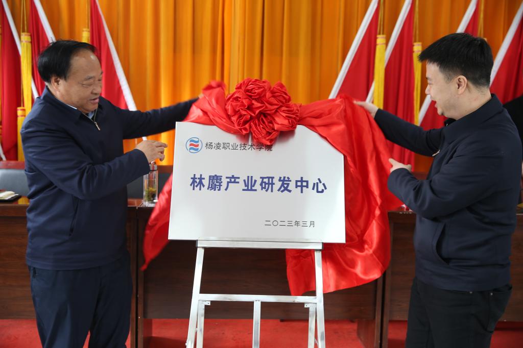 我校党委书记王周锁和凤县县长蒋铃共同为“杨凌职业技术学院林麝产业研发中心”揭牌