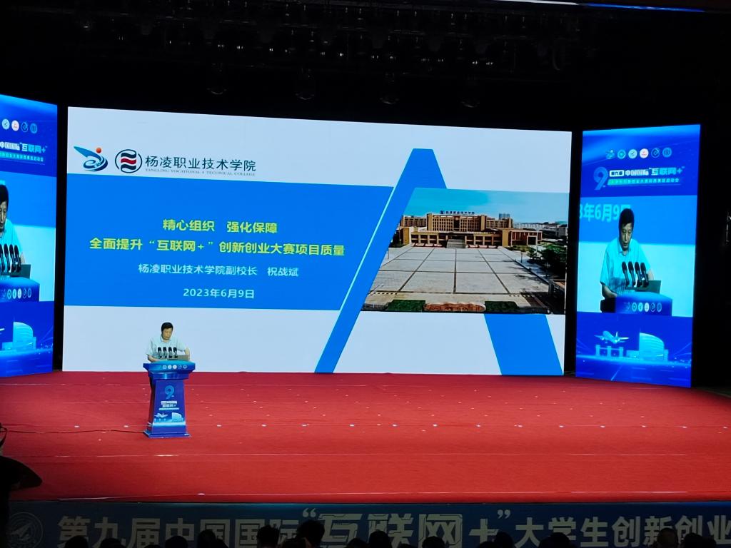 祝战斌在交流发言中介绍了我校以“互联网+”大赛为抓手,坚持“教育、培训、比赛、实践、孵化”相结合,构建“专创融合”的教育培养体系,依托杨凌示范区内的国家大众创业万众创新示范基地,建立多元化“双创”教育实践平台,构建系列服务学生“双创”保障机制,为学生创新创业提供良好条件的做法取得的成效。