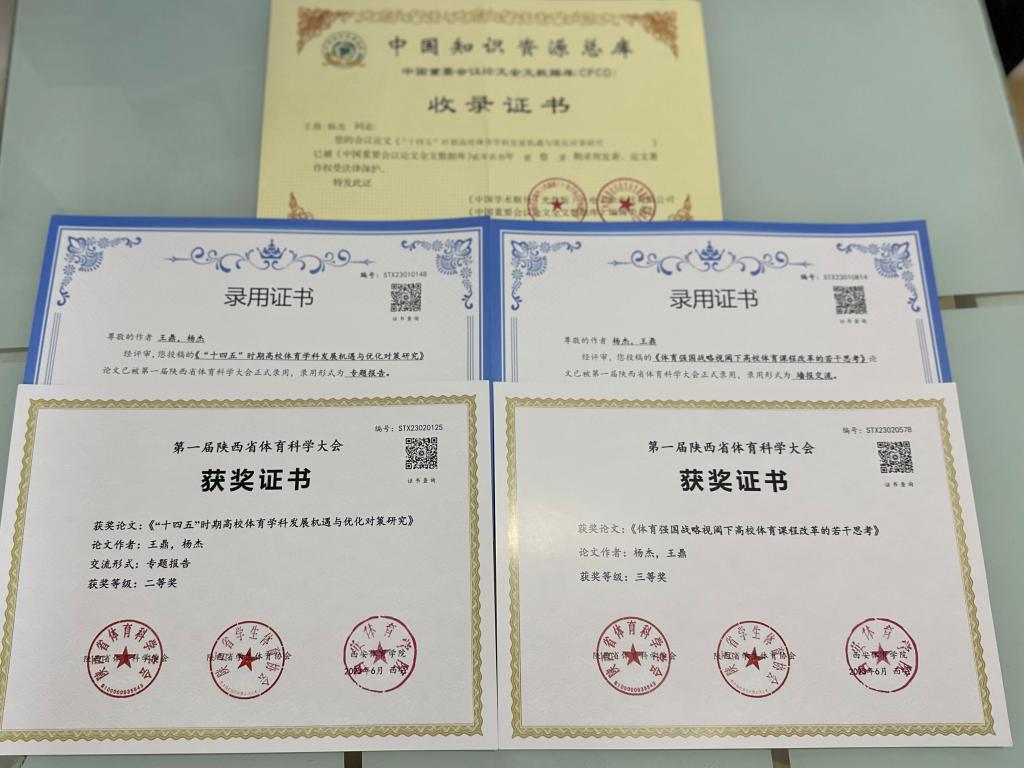 体育课教学部教师7篇论文在第一届陕西省体育科学大会获奖