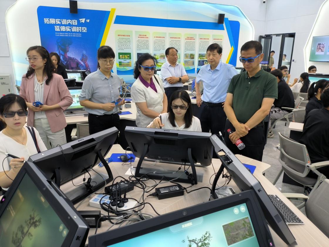 6月30日,教育部高等学校科学研究发展中心、国家职业教育虚拟仿真基地智库专家田秀萍、苏航等一行8人来校,就学校虚拟仿真实训基地建设情况进行调研指导。省教育厅职成教处处长王鹏,学校党委书记王周锁、副校长祝战斌,以及教务处、生物工程学院、生态环境工程学院负责人参加调研活动。