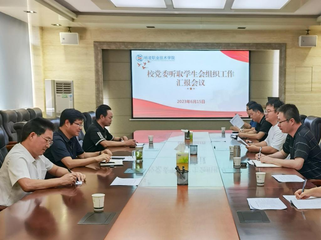 为加强学校党委对学生会工作的领导,进一步深化学生会改革,引导学生会更好地发挥职能,服务青年学生成长成才,6月15日,我校召开校党委听取学生会组织工作汇报会。校党委委员、副校长张朝晖代表校党委听取汇报,党委组织部部长、党总支书记代表、马克思主义学院党总支副书记,以及校团委全体工作人员、校学生会成员、各院学生会执行主席参加会议。会议由校团委书记陈吼主持。
