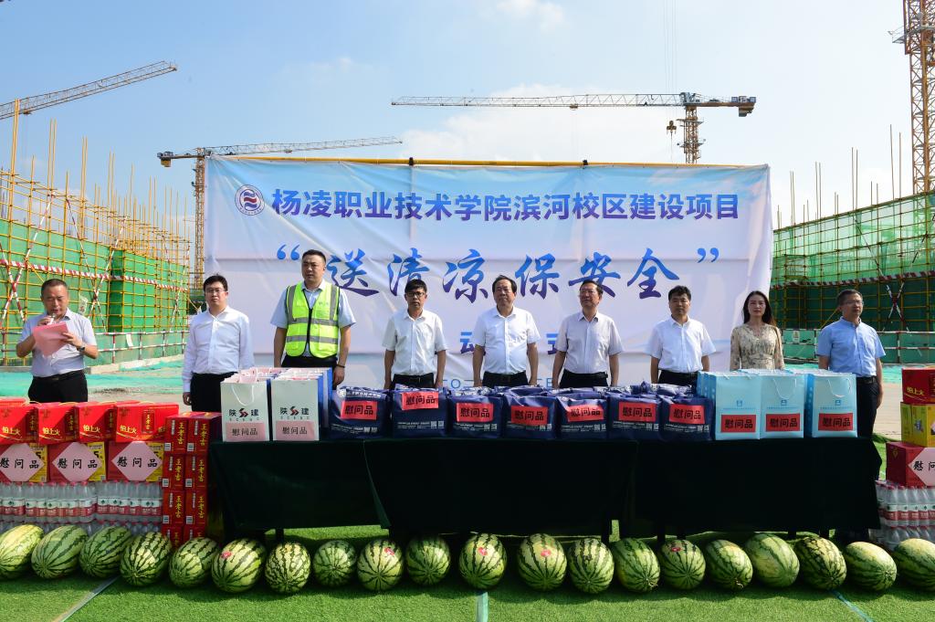 8月2日,我校滨河校区开展“送清凉 保安全”慰问活动。校领导班子成员和中建西北设计院相关领导共同为奋战在一线的工作人员送去防暑降温慰问品,并叮嘱广大施工人员要注意防暑降温,保重身体,推进滨河校区项目高质量建设,为学校科学发展、跨越发展做出新的贡献。