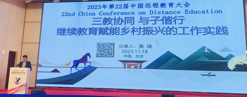 1116日至19日,2023(第二十二届)中国远程教育大会在北京召开,我校继续教育与培训学院负责人在会上以“三教协同 与子偕行,继续教育赋能乡村振兴的工作实践”为主题,作工作经验交流。
