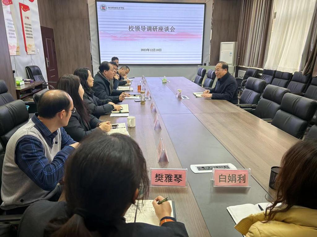 12月18日,校长仲伟周深入生物工程学院、旅游与管理学院开展调研。二级学院班子成员、教研室主任及教师代表参加座谈会,党委(校长)办公室负责人陪同调研。
