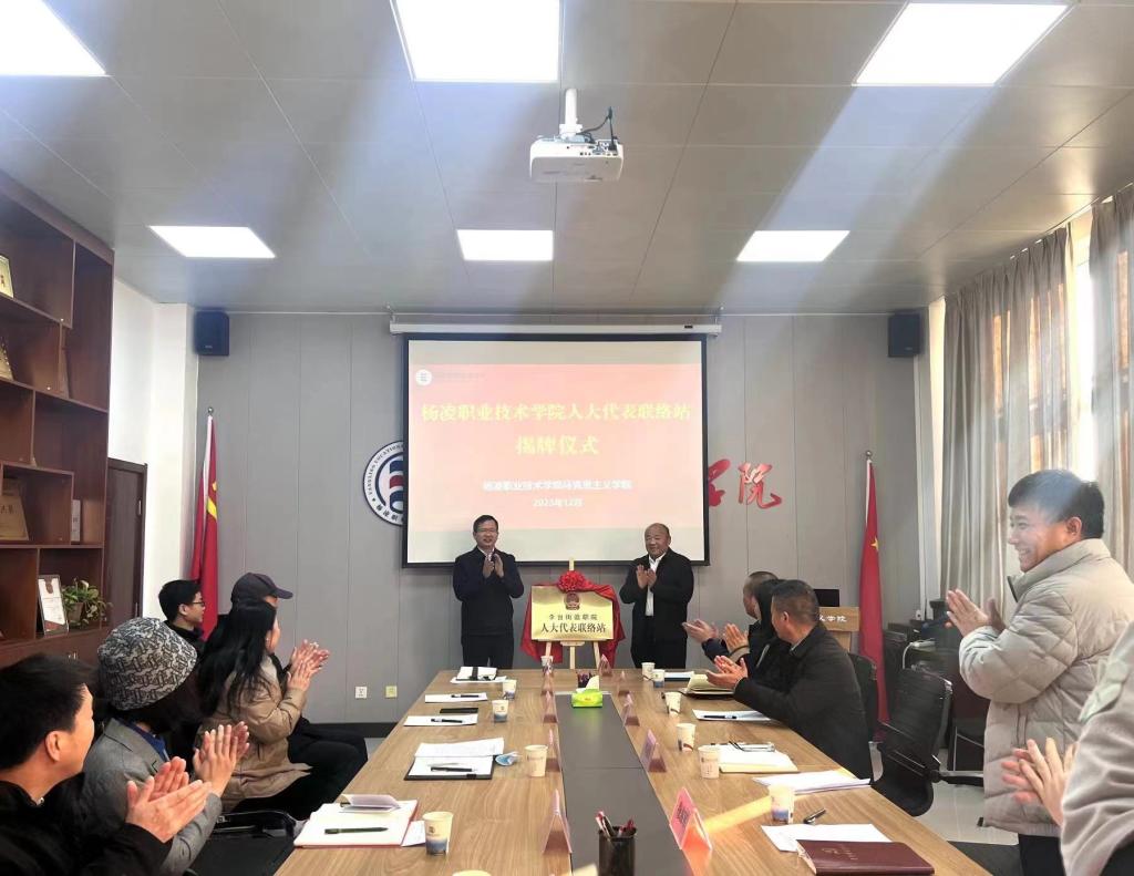 12月26日,杨陵区人大代表联络站揭牌仪式在我校马克思主义学院举行。杨陵区人大常委会主任李冠明、区人大常委会副主任穆海军,我校副校长张朝晖出席揭牌仪式。李冠明和张朝晖共同为杨凌职业技术学院人大代表联络站揭牌。
