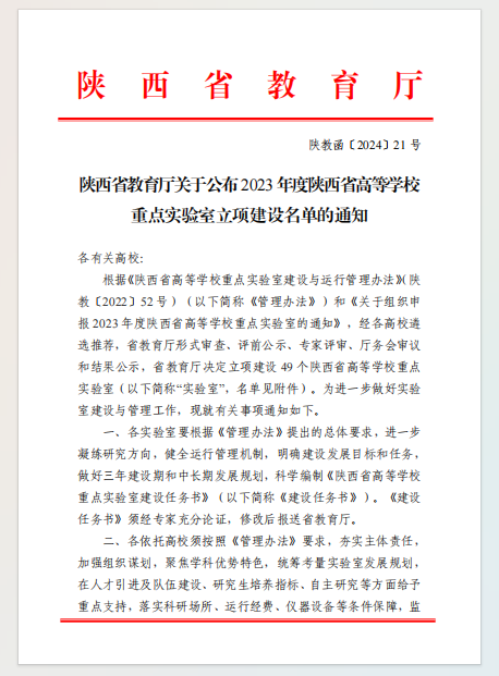 学校获批立项陕西省高等学校重点实验室