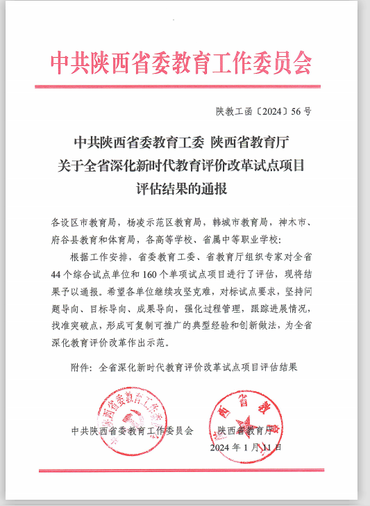 学校获陕西省教育评价改革综合试点评估“优秀”等级