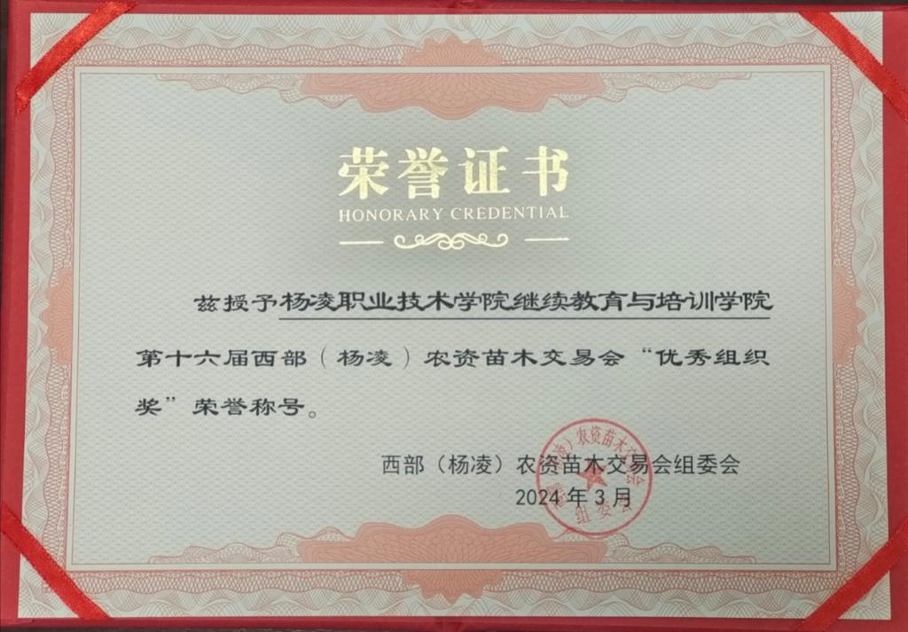 近日,第三十一届杨凌农高会春季分会暨第十六届西部(杨凌)农资苗木交易会闭幕,学校荣获优秀组织奖。