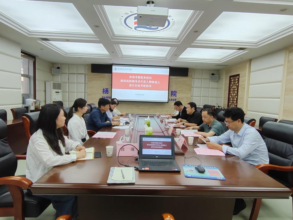 59日下午,省委教育工委学工部第3考察组西安建筑科技大学学工部部长申健、陕西师范大学学工部副部长王党、西安培华学院学工部部长权勇太和陕西工业职业技术学院学工部部长郝军一行5人来校对陕西高校辅导员年度人物候选人进行考察。