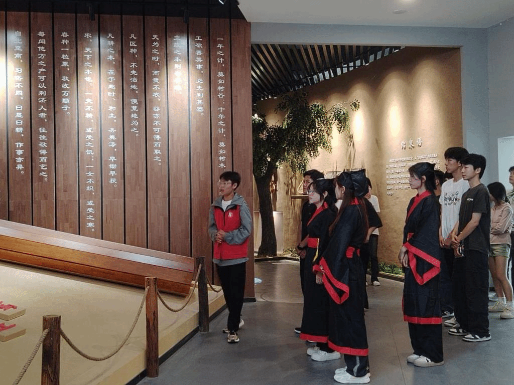 学生且歌且舞,诵读经典作品《诗经·小雅·采薇》,还参观了学校耕读文化馆。