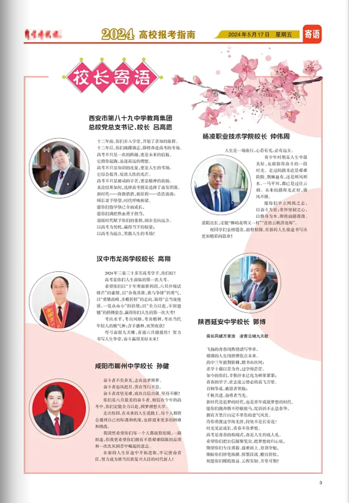 陕西教育报刊社《2024高校报考指南》:校长仲伟周寄语高考生