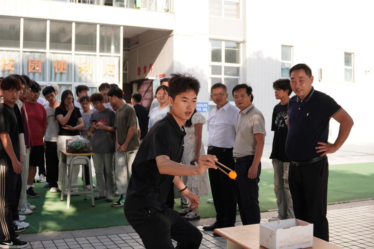 活动现场设置了投壶、刻纸、漆扇等项目,师生兴趣浓厚,现场气氛活跃,大家在趣味中增加了对端午节的认识,感受到了传统节日的浓厚氛围。张朝晖亲切询问同学们在校生活及学习情况,勉励大家要发扬民族精神,传承民族文化,不断加强学习和交流,不断增强民族自豪感,团结奋进,为今后步入社会打好基础。