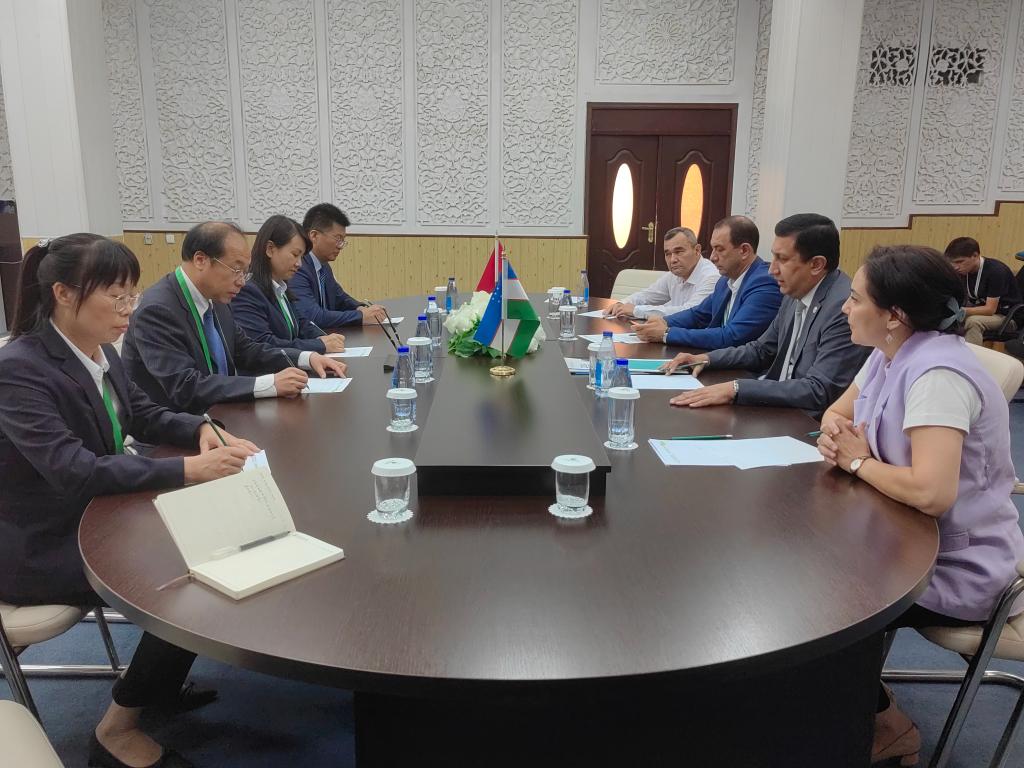 在乌兹别克斯坦塔什干国立农业大学,仲伟周参观了该校现代农业科研成果展,“中国杨凌职业技术学院-乌兹别克斯坦塔什干国立农业大学专业技能培训基地”揭牌。双方围绕教育交流合作内容进行了深入讨论,并达成共识。