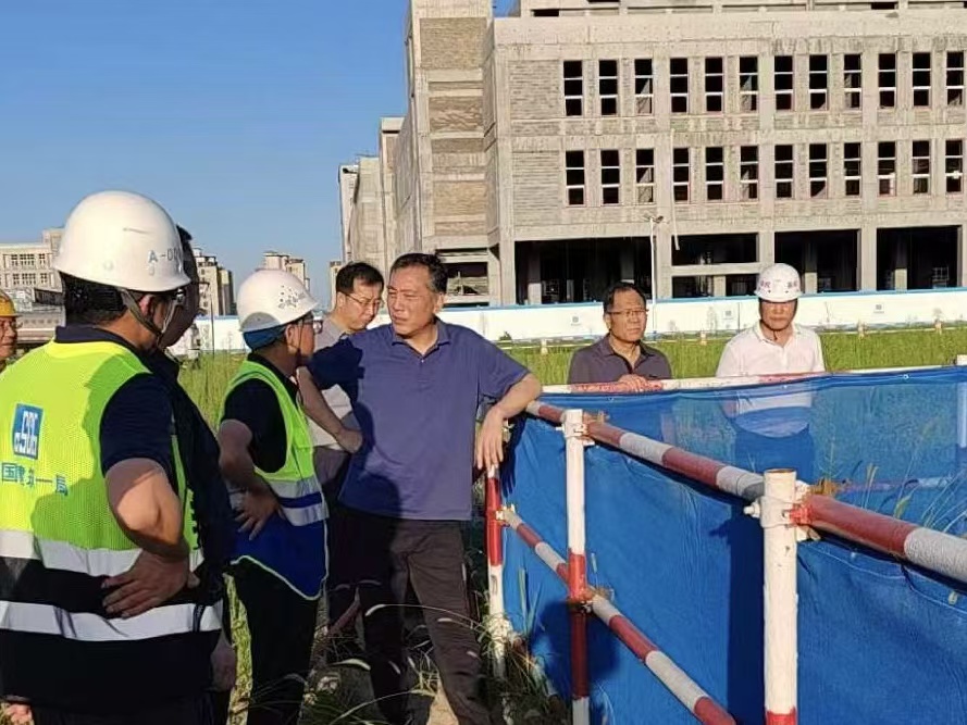 8月12日下午,党委书记韩明军深入滨河校区施工现场,实地检查督导项目建设情况党委(校长)办公室、基建处负责人陪同检查。