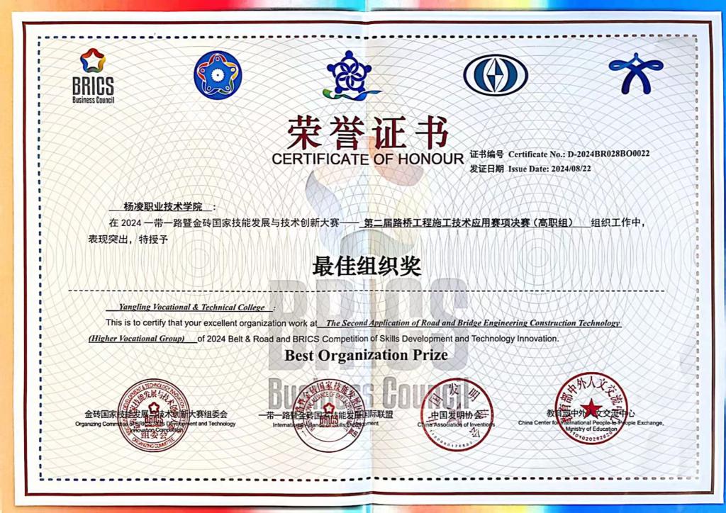 8月20至22日,2024一带一路暨金砖国家技能发展与技术创新大赛高职组“路桥工程施工技术应用”赛项在山东交通职业学院举行,共有来自全国178支高职院校代表队参加。我校交通与测绘工程学院道路与桥梁工程技术专业郭锋、苟伟航两名学生获高职组团体赛一等奖,严超群、卫少阳两名教师获优秀指导教师,学校获最佳组织奖。