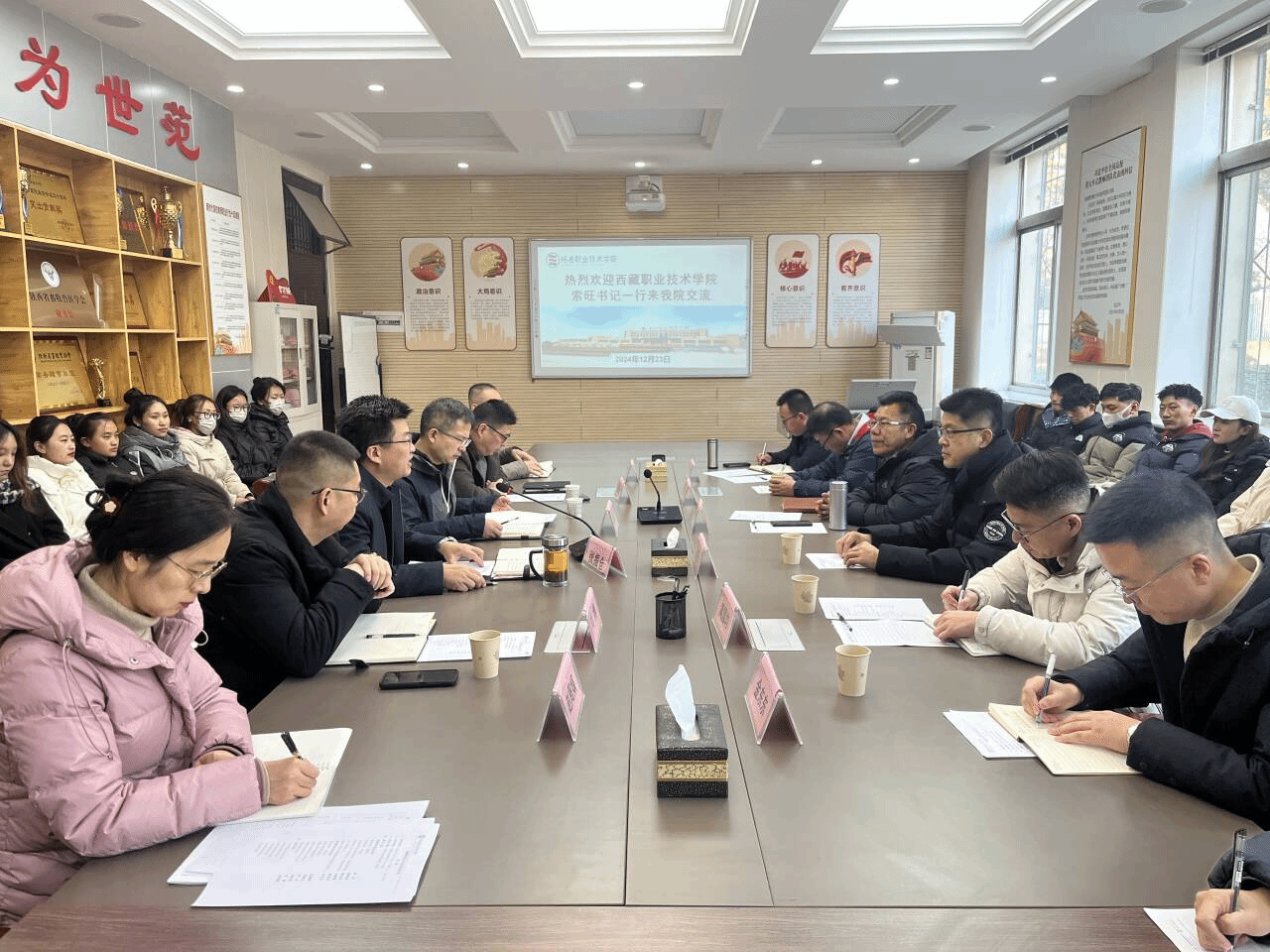 12月23日下午,西藏职业技术学院党委书记、副校长索旺,副校长程晓盈,农业科学技术学院院长郭东伟,动物科学技术学院院长刘海聪一行来校考察交流。党委书记韩明军,校长仲伟周,副校长张朝晖陪同考察。