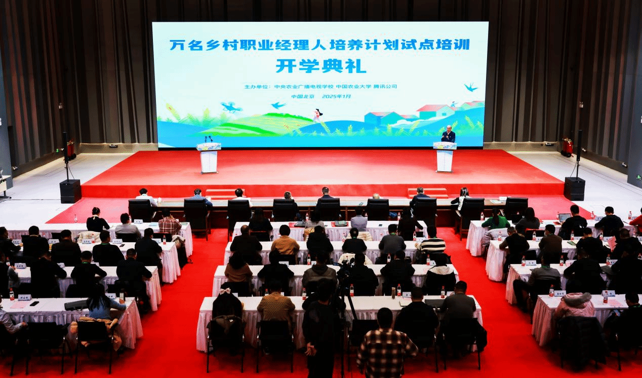 1月7日上午,由中央农业广播电视学校、中国农业大学、腾讯公司共同举办的万名乡村职业经理人培养计划全国分中心授牌仪式暨试点培训班举行开学典礼,万名乡村职业经理人试点培训正式启动。