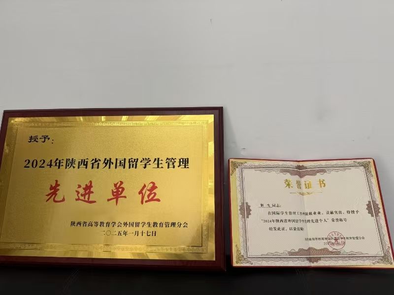 1月17日,由陕西省教育厅、陕西省高等教育学会外国留学生教育管理分会主办,长安大学承办的陕西省高等教育学会外国留学生教育管理分会换届大会和2024年度留管分会优秀国际学生管理干部及单位颁奖大会在长安大学举办。会上,学校获2024年陕西省外国留学生管理先进单位,国际学院国际学生专职辅导员郭飞获陕西省外国留学生管理先进个人称号。