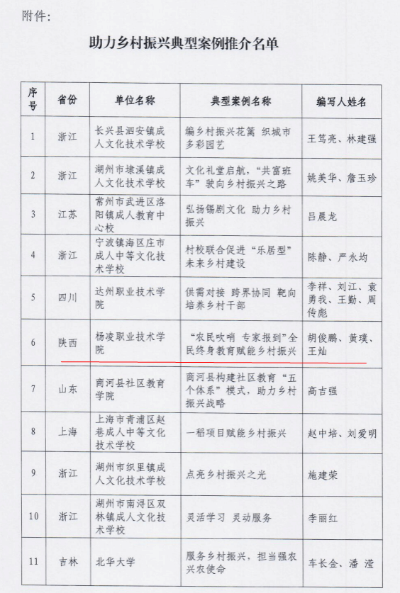 近日,中国成人教育协会公布了助力乡村振兴典型案例推荐名单,我校案例《“农民吹哨 专家报到”全民终身教育赋能乡村振兴》入选。