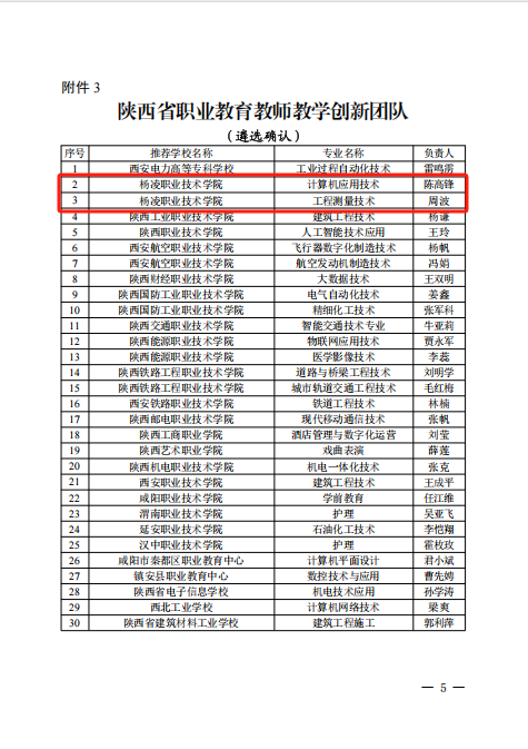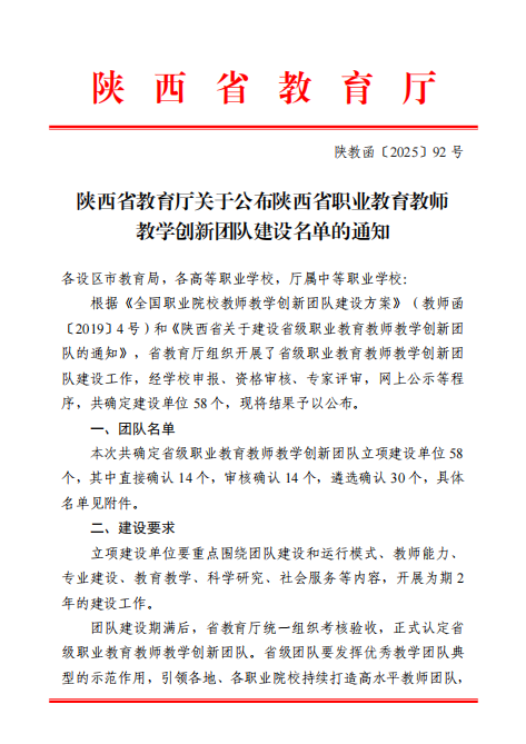 我校5个团队入选陕西省职业教育教师教学创新团队