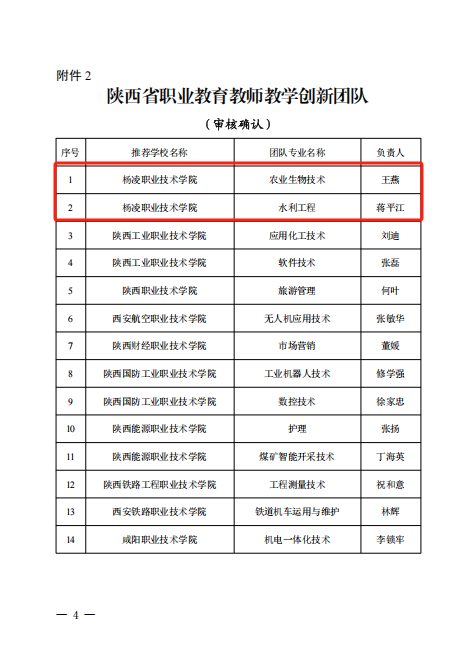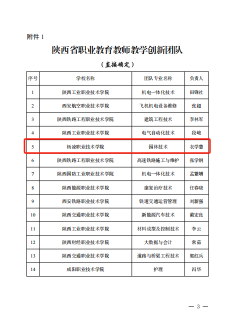 近日,省教育厅公布省级职业教育教师教学创新团队建设名单我校衣学慧负责园林技术王燕负责农业生物技术蒋平江负责水利工程陈高锋负责计算机应用技术周波负责工程测量技术等5个专业团队成功入选