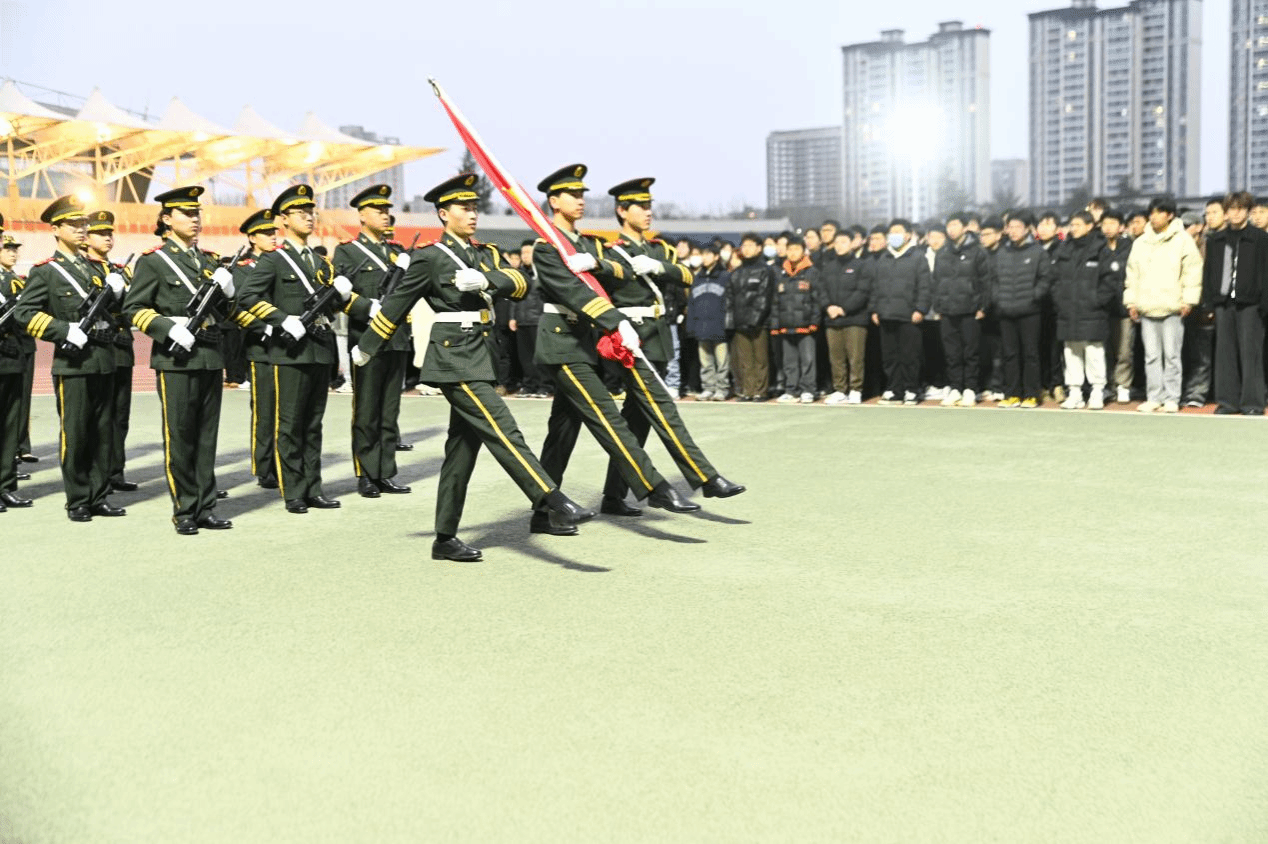 7点整,所有人员集合完毕。国护队员们身着整齐制服,迈着铿锵有力的步伐,缓缓走向升旗台。在激昂的国歌声中,‌五星红旗冉冉升起,‌现场师生庄严肃立,向国旗行注目礼。