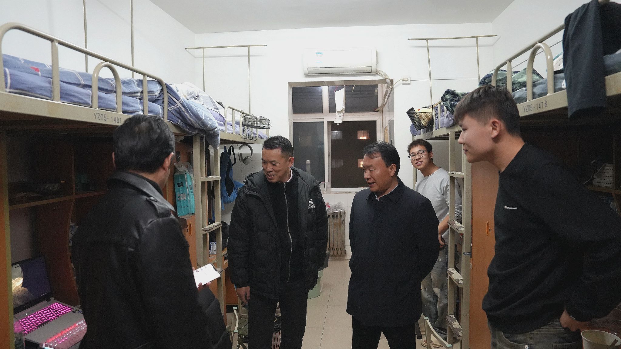 晚上,校领导分别带队深入三校区学生公寓看望返校学生与学生们亲切交谈,询问他们的假期生活和返校后的适应情况,了解他们的生活情况和需求,并叮嘱他们注意安全,合理安排学习和生活以饱满的精神状态迎接新学期。