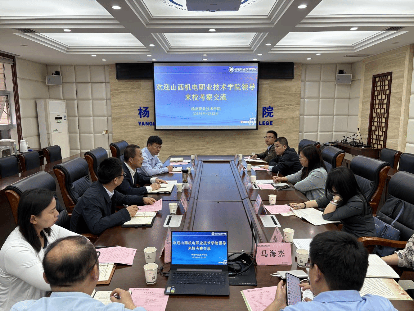 4月23日下午,山西机电职业技术学院副校长李粉霞一行来我校调研考察。副校长胡俊鹏参加座谈。