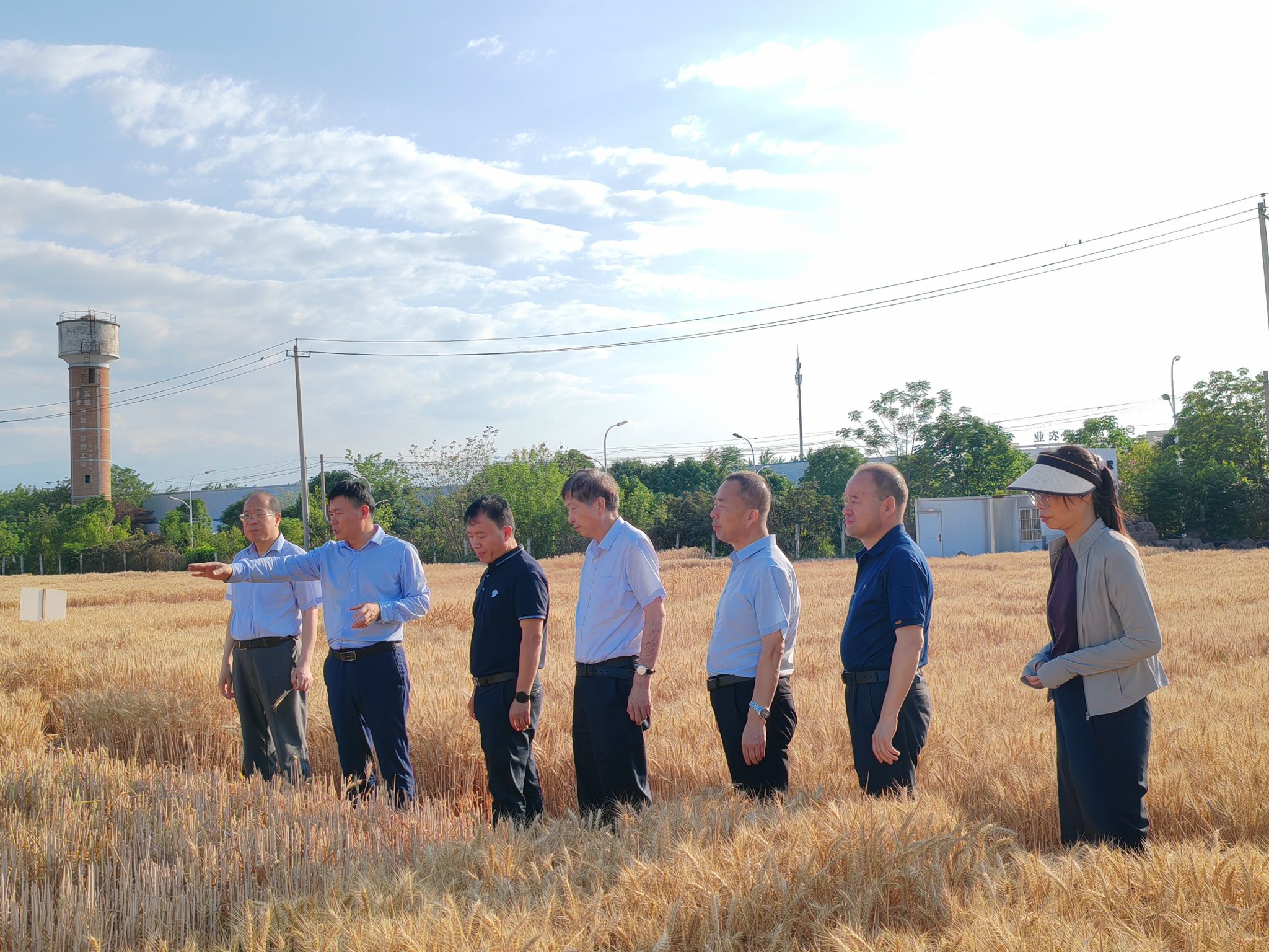 小满节气过后,冬小麦即将进入完熟期,麦穗由青变黄。豆村教学实验农场麦浪翻滚,满目金黄,一幅小麦丰收的画卷徐徐展开。在赵瑜研究员的带领下,学校领导一行走进麦田,参观大穗大粒优质高产小麦品种“武农981”“武农988”表现情况和小麦新品种繁育情况。赵瑜小麦研究所试验田里的小麦壮硕挺拔、颗粒饱满,散发出阵阵麦香。望着眼前一片片根粗苗壮、穗大粒满的小麦,大家难掩心中喜悦,一边听赵瑜研究员介绍小麦的生长条件和特性,一边询问小麦收成、农民收益情况。在杨凌职业技术学院小麦育种产学研基地,学校领导一行现场观摩了王稳江教授培育的“职院15”、“职院171”等小麦新品种田间生长情况。